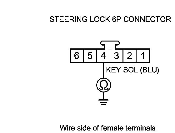 11. Check for continuity between steering lock 6P connector terminal No. 4 and body ground.