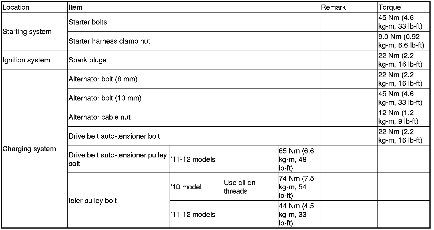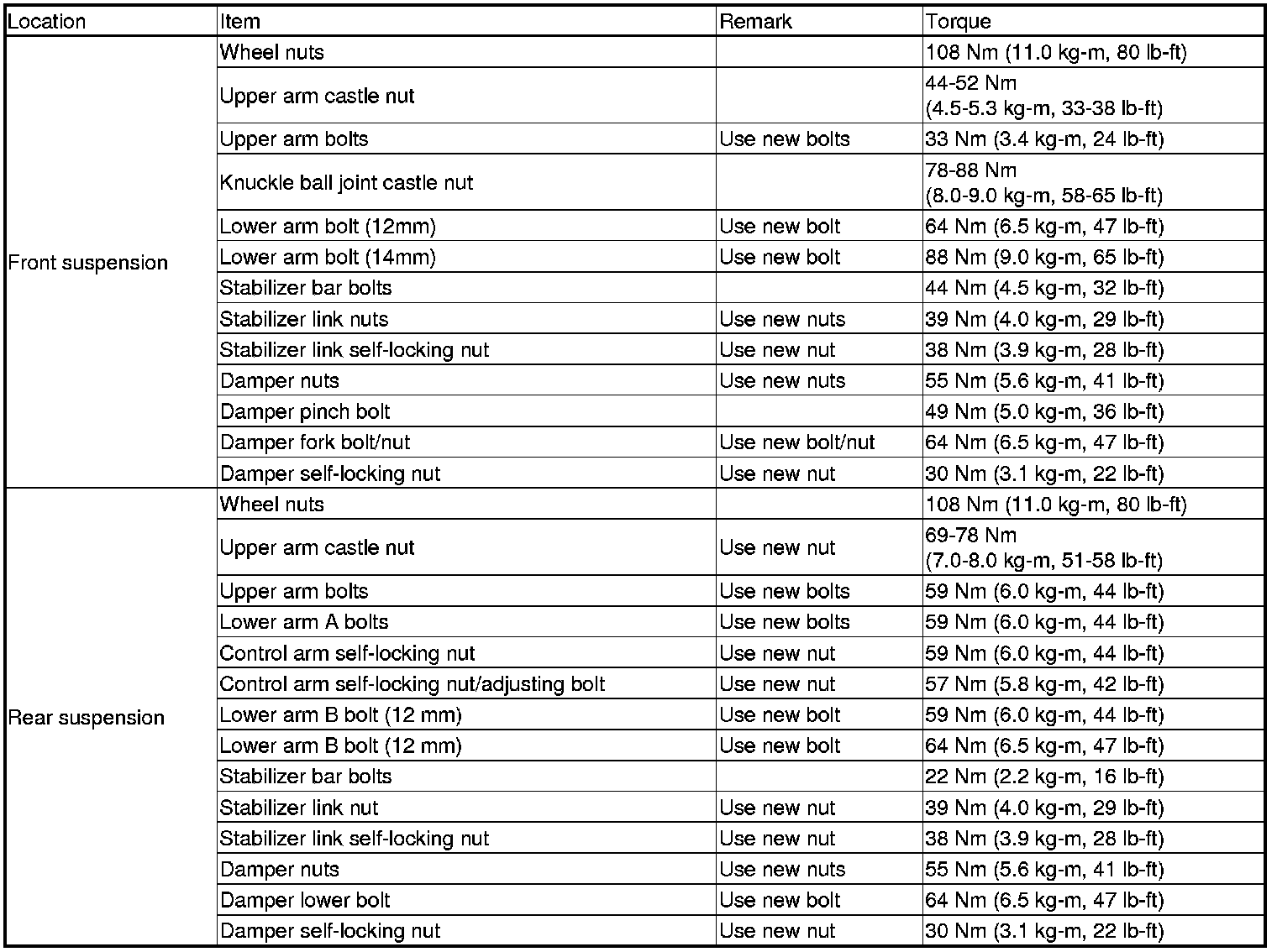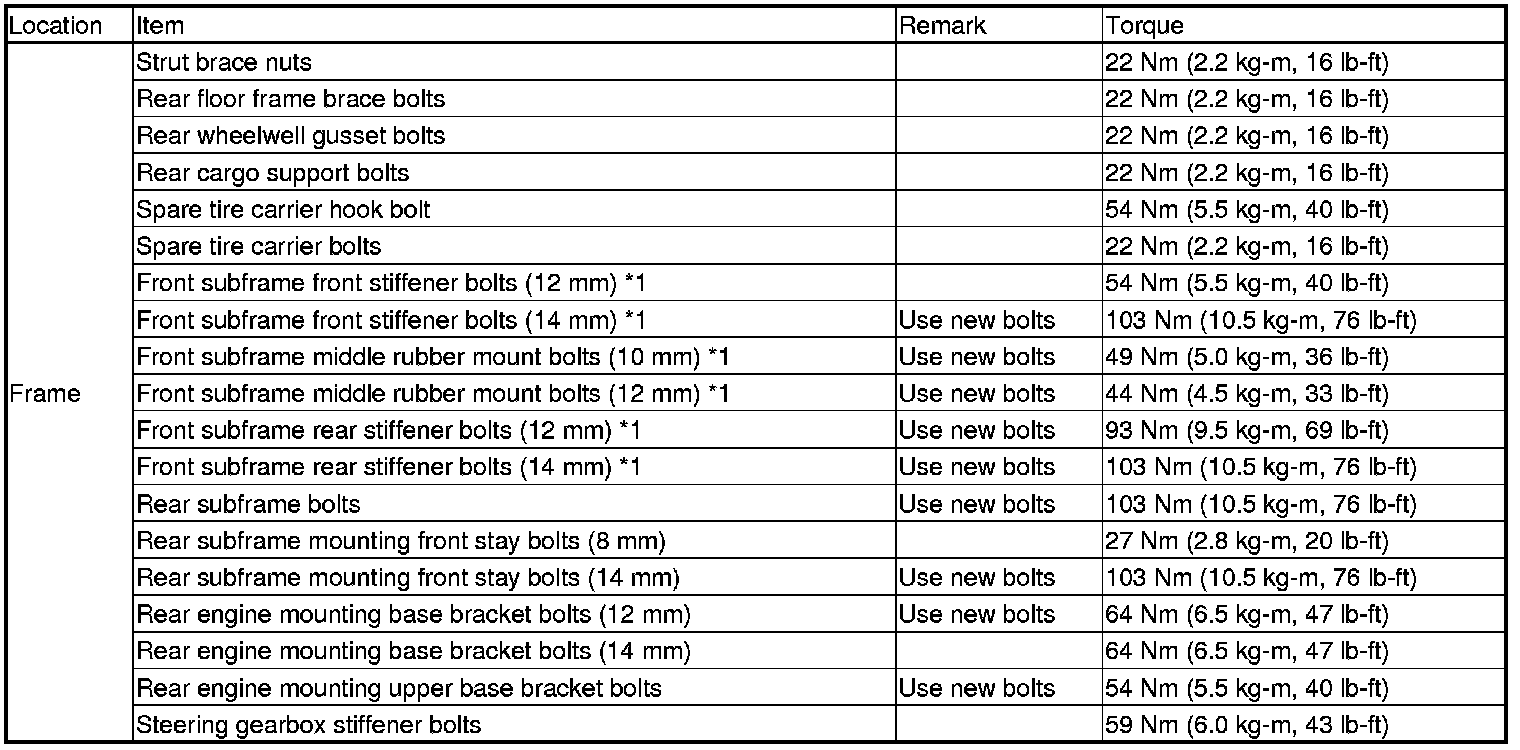 -Refer to each S/M section for the bolts/nuts not indicated here.
