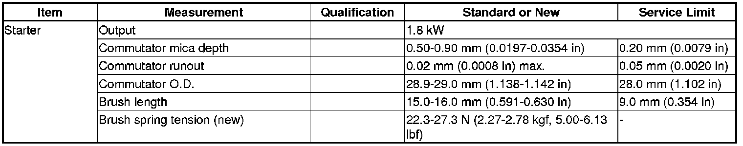 Starting System: Specifications