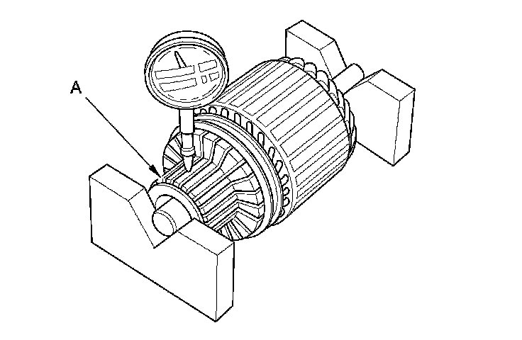 9. Use a digital caliper or dial type caliper to check the mica depth (A). If the mica depth is below the service limit, replace the armature.