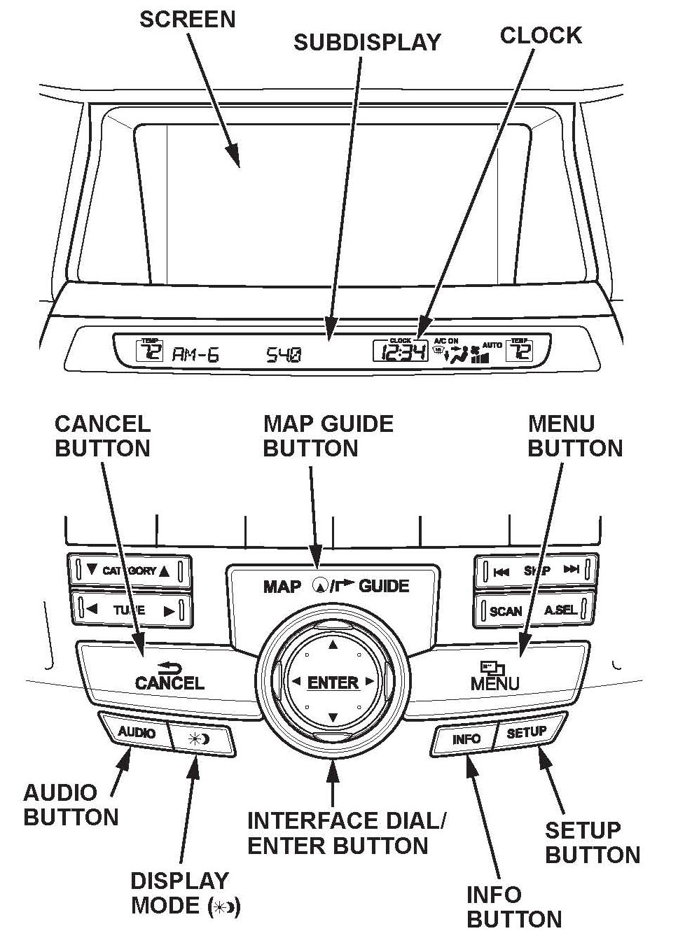 The buttons listed above are used in this service bulletin. For more information on the button functions, see Getting Started in the navigation manual.