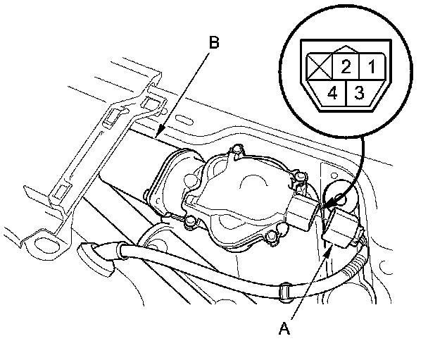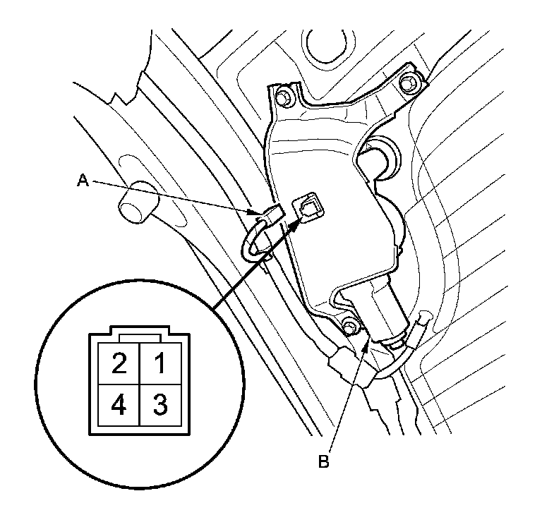 3. Disconnect 4P connector (A) from the windshield wiper motor (B).