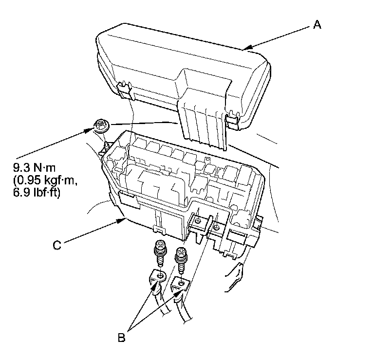 3. Remove the under-hood fuse/relay box (C) from the bracket.