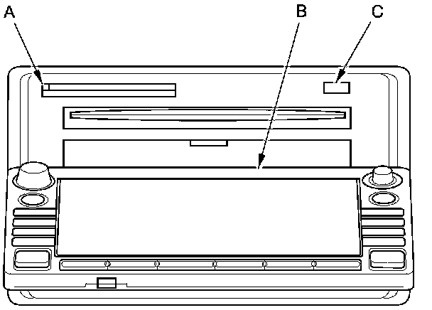 4. Push the CD eject button (C), and navigation DVD eject button and remove the discs (holding both discs by their edges to avoid fingerprints). To avoid scratches, place the navigation DVD, and customer's CD in a jewel case if available.