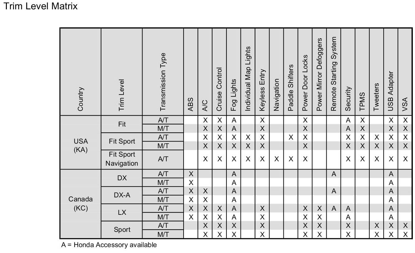 ETM Trim Level Matrix