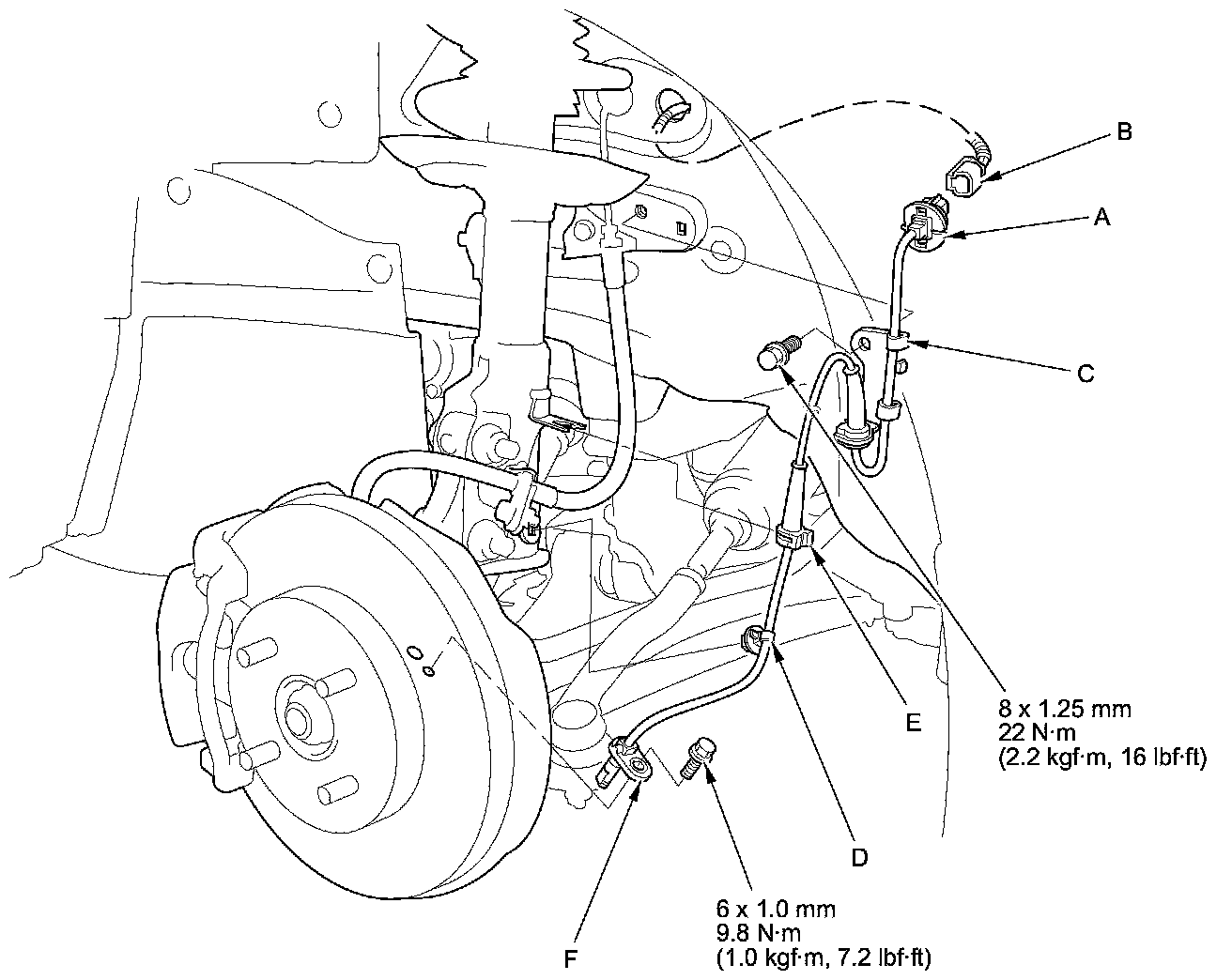 5. Install the wheel speed sensor in the reverse order of removal, and note these items: