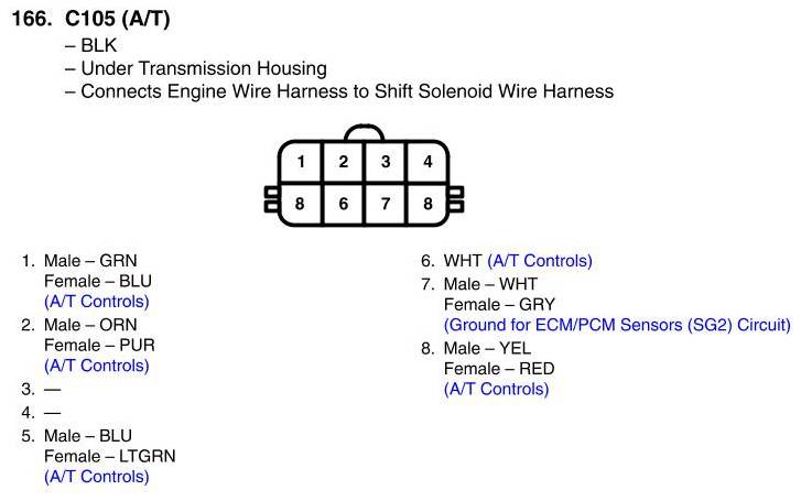View 166 - C105 Connector View (A/T)