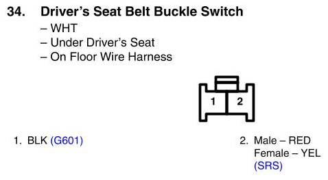 View 34 - Driver's Seat Belt Buckle Switch Connector View
