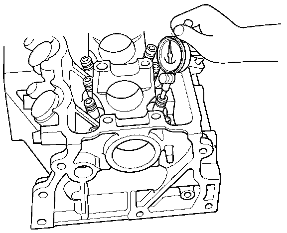 2. Subtract the O.D. of the valve stem, measured with a micrometer, from the I.D. of the valve guide, measured with an inside micrometer or ball gauge.