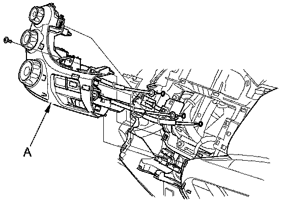 4. Remove the screw, and pull out the heater-A/C control panel (A) to access the electrical connectors.