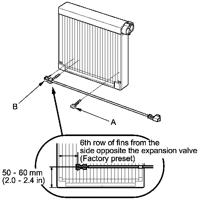 NOTE: At the factory, the evaporator temperature sensor is installed at the 6th row of fins from the side opposite of the expansion valve.
