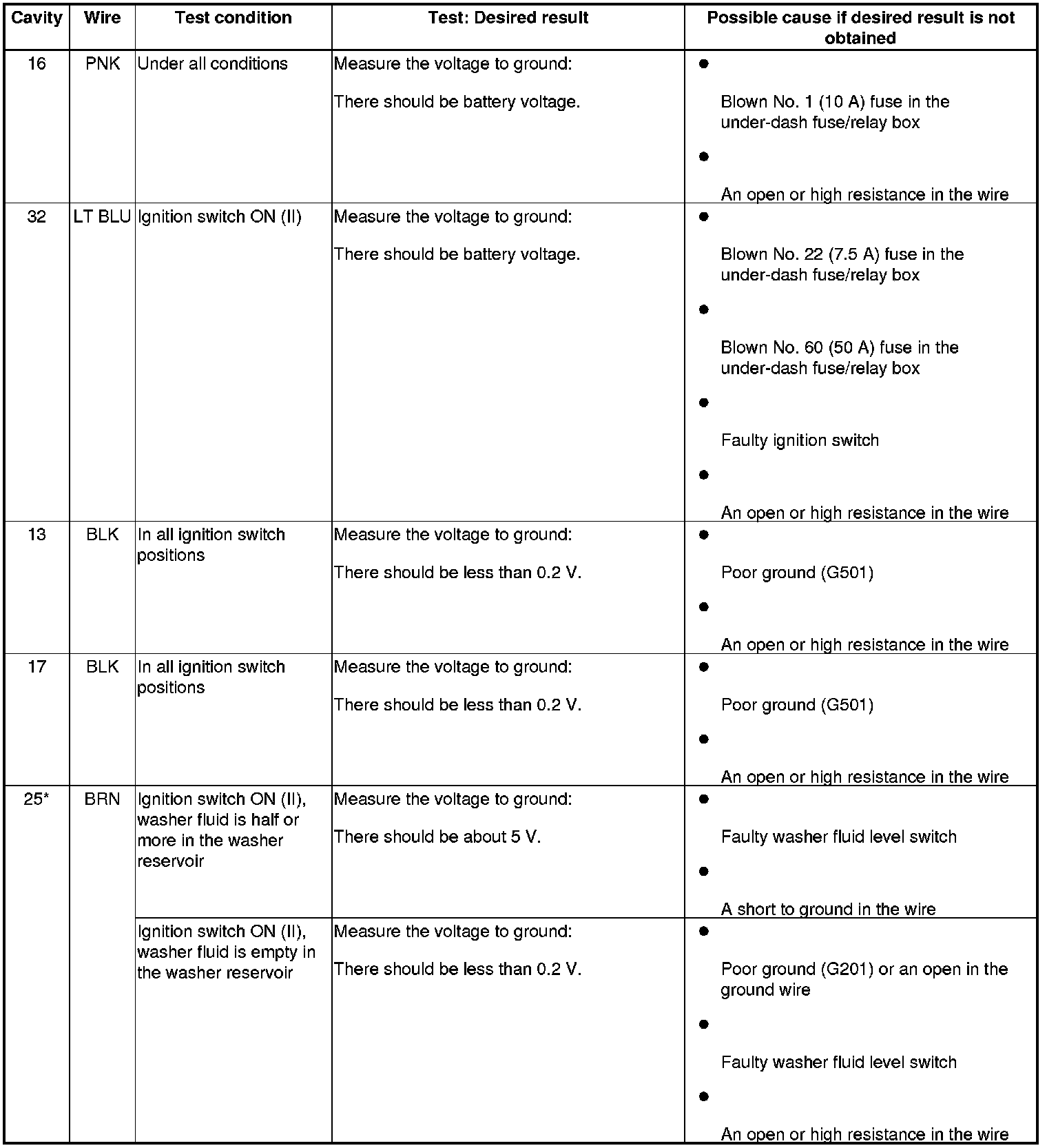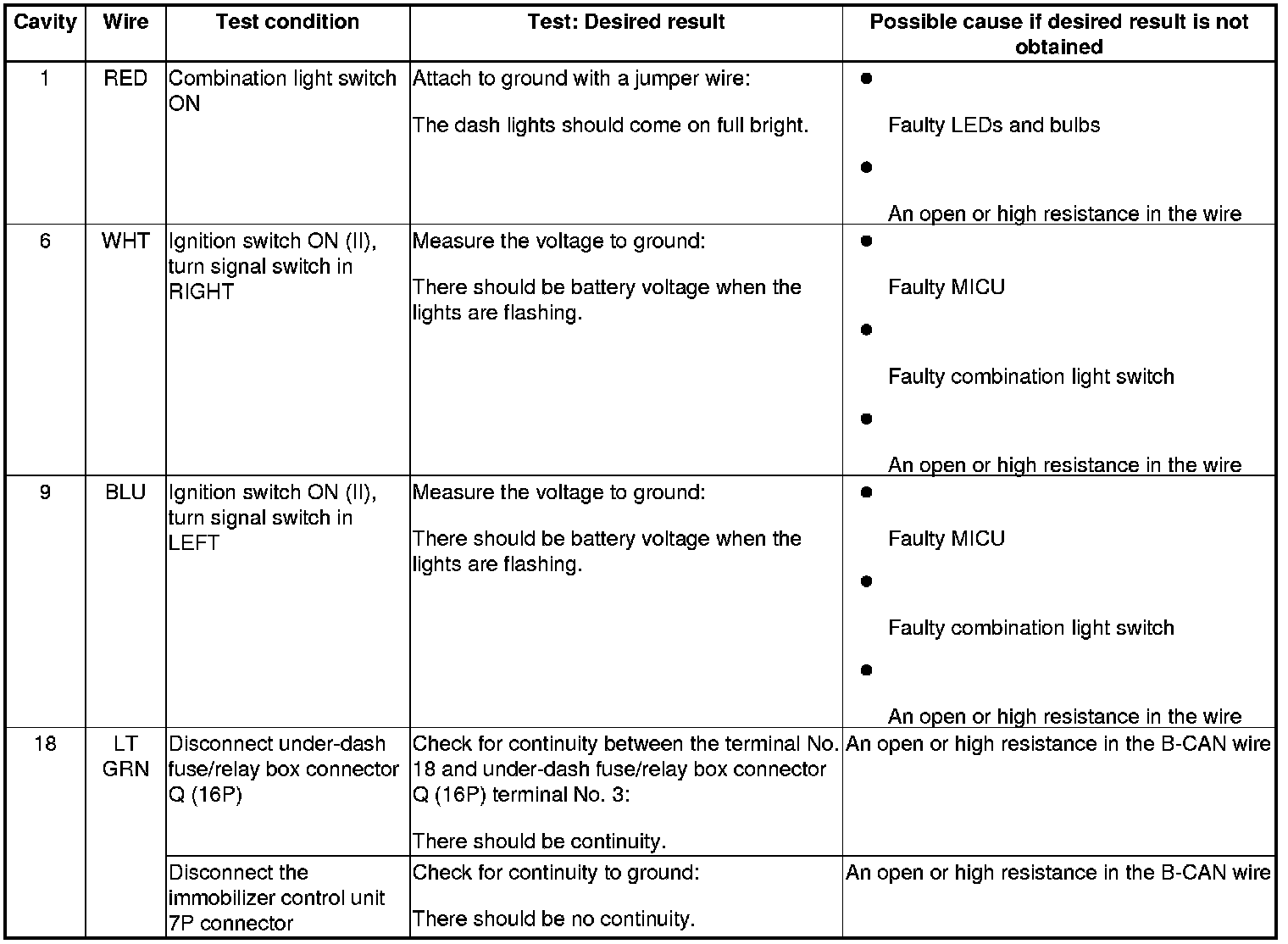5. Reconnect the 32P connector to the gauge control module, and do these input tests at the following connector.