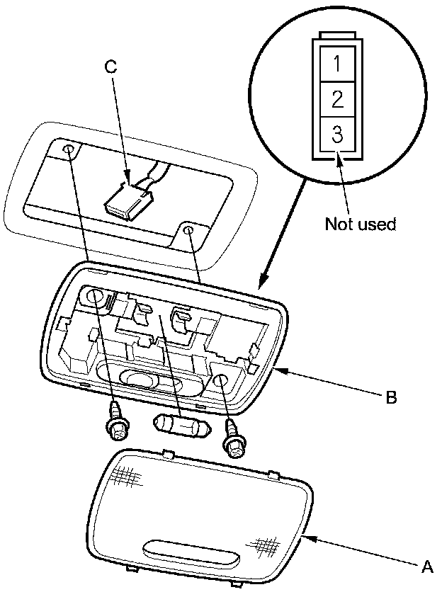 4. Disconnect the 3P connector (C) from the ceiling light.