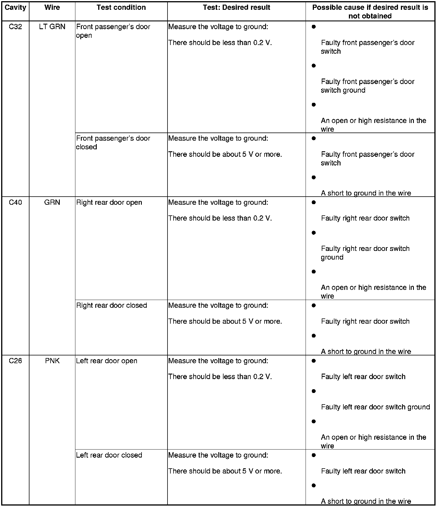 5. Reconnect the connectors to the under-dash fuse/relay box, and do these input tests at the following connectors.