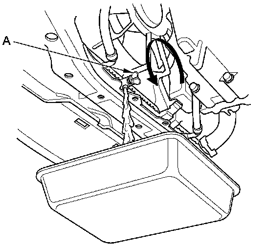 4. Remove the drain bolt (A) located at the rear of the engine block.