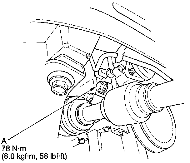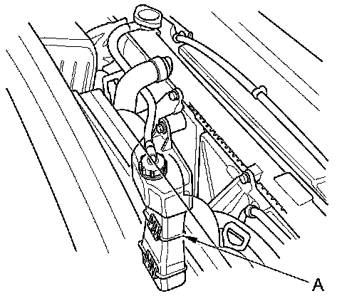 8. Fill the coolant reservoir to the MAX mark (A) with Honda Long Life Antifreeze/Coolant Type 2 .