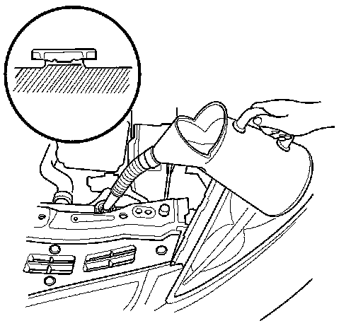 9. Pour Honda Long Life Antifreeze/Coolant Type 2 into the radiator up to the base of the filler neck.