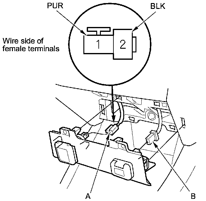 6. Measure the voltage between the accessory power socket terminals No. 1 and No. 2. There should be battery voltage.