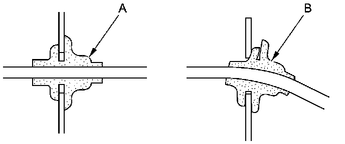 - Seat grommets in their grooves properly (A). Do not leave grommets distorted (B).