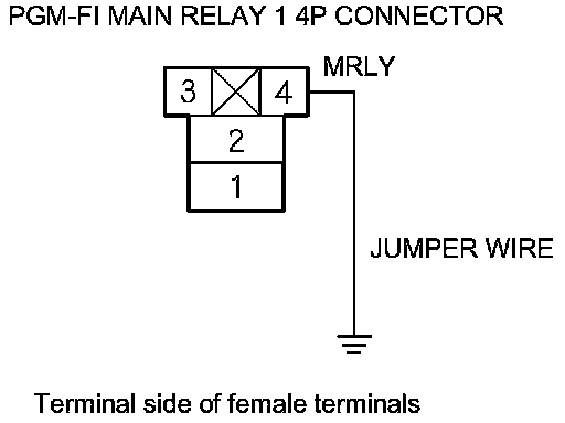 64. Connect PGM-FI main relay 1 4P connector terminal No. 4 to body ground with a jumper wire.