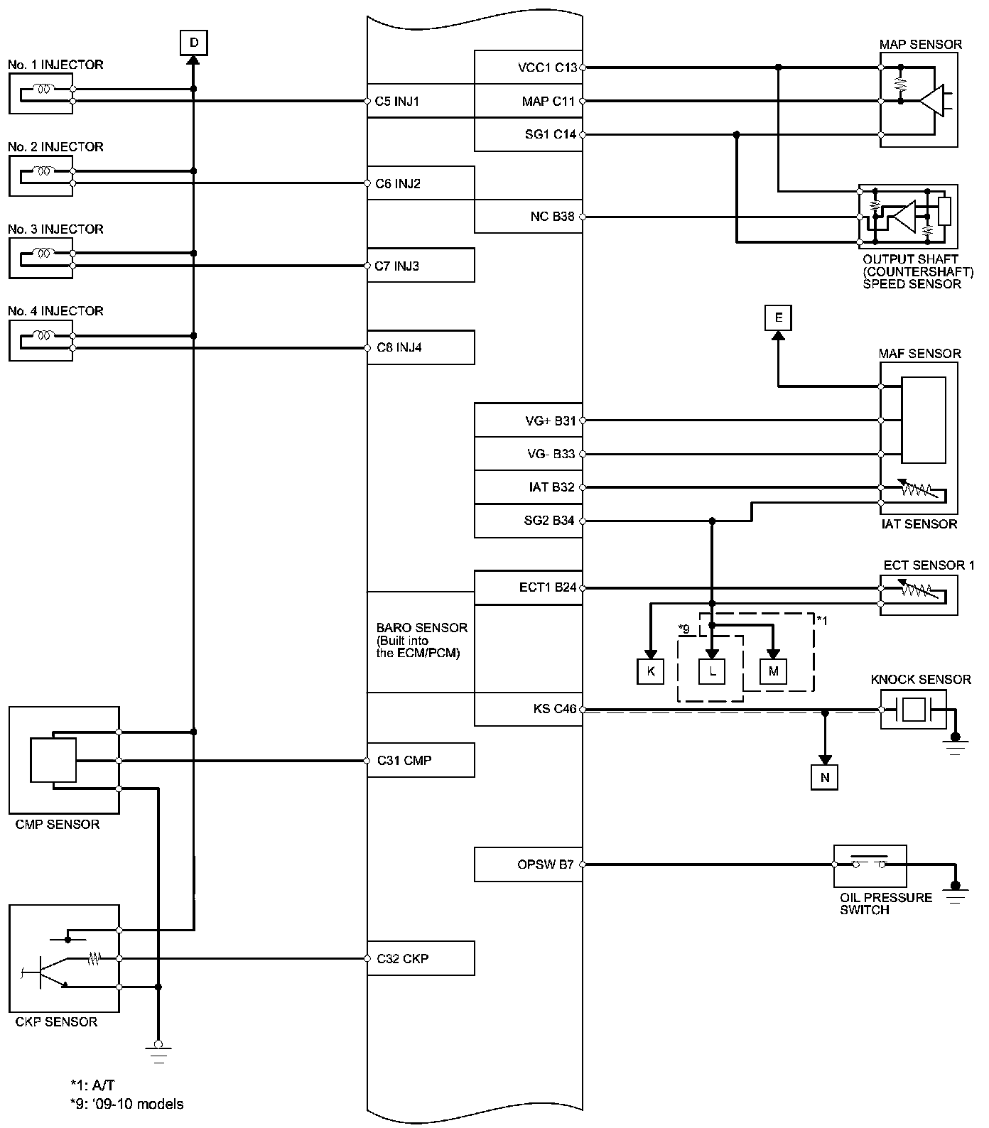 ECM/PCM Inputs and Outputs at ECM/PCM Connector C (circle) (49P)