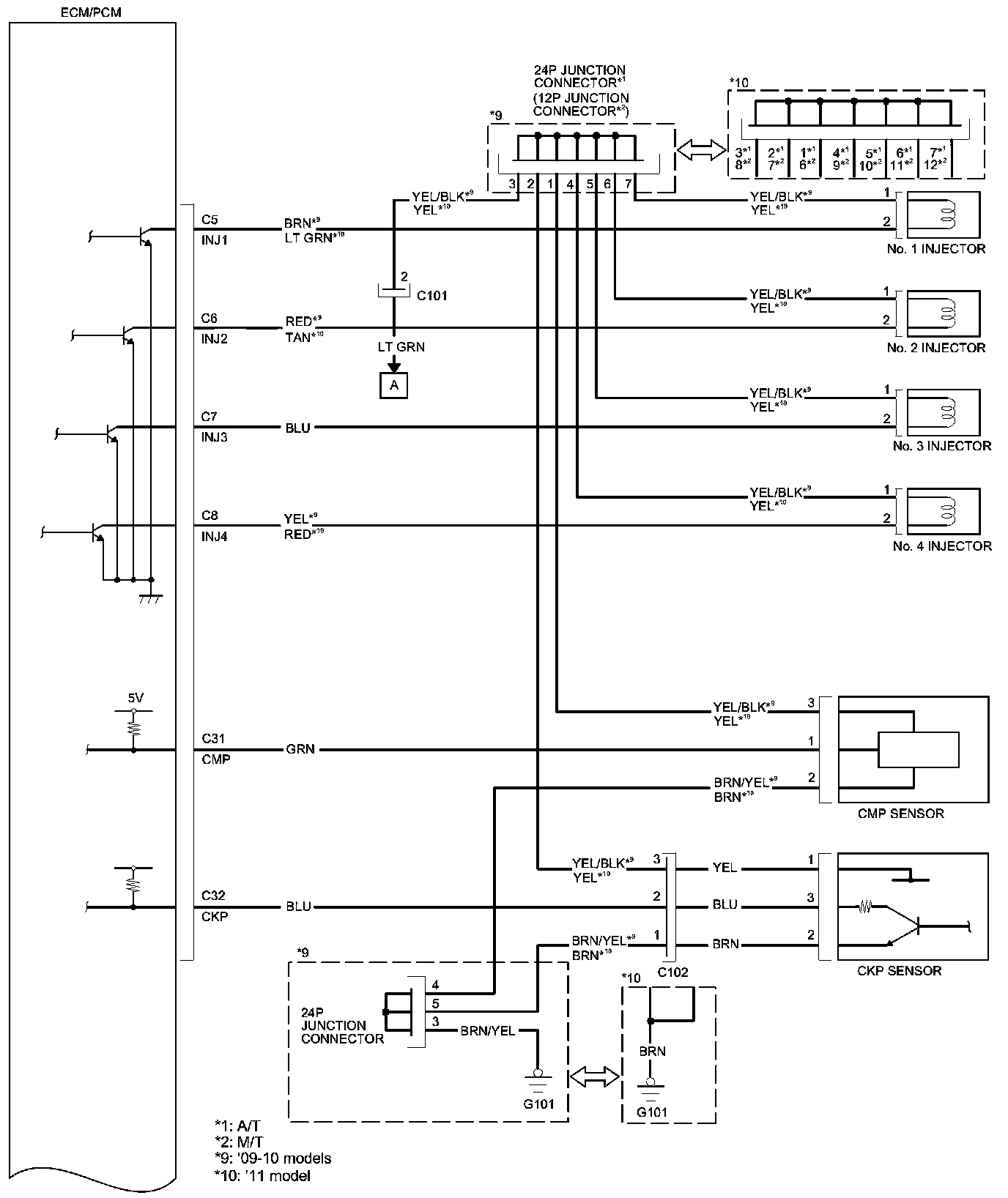 The functions of the fuel and emission control systems are managed by the engine control module (ECM) on vehicles with manual transmissions or the powertrain control module (PCM) on vehicles with automatic transmissions.