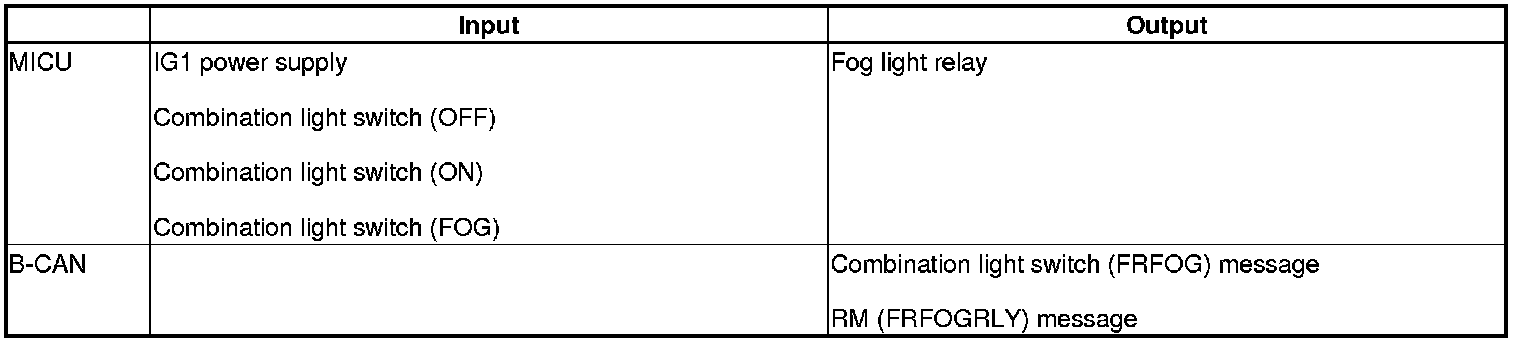 The MICU control of the fog lights is based on input signal from the fog light switch.