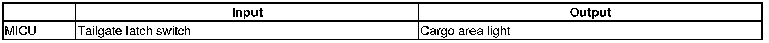The MICU control of the cargo area light is based on the tailgate latch switch.