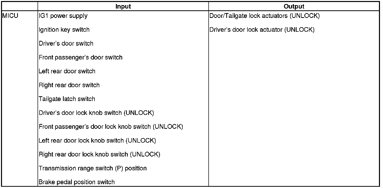 The MICU control of the door lock actuators is based on inputs from each switch and B-CAN data.