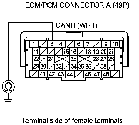 36. Check for continuity between ECM/PCM connector terminal A3 and body ground.
