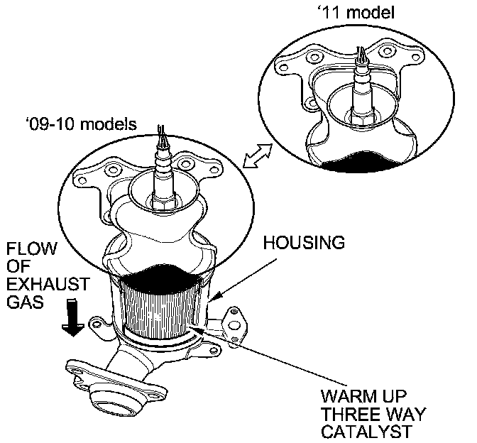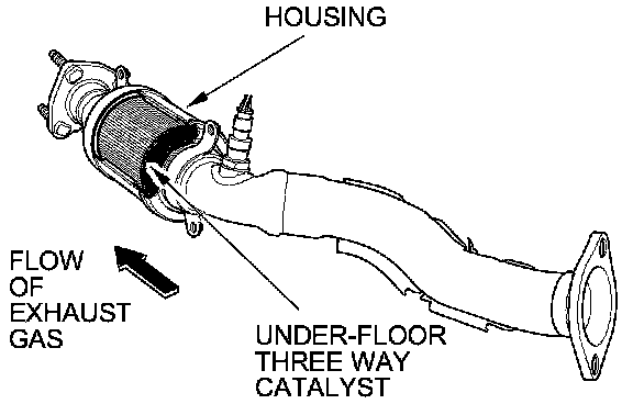 The WU-TWC and the under-floor TWC convert hydrocarbons (HC), carbon monoxide (CO), and oxides of nitrogen (NOx) in the exhaust gas to carbon dioxide (CO2), nitrogen (N2), and water vapor.