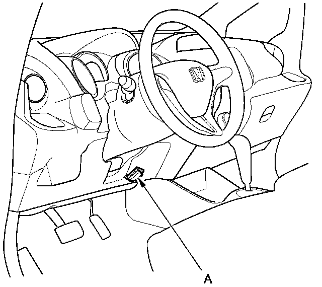 When the Honda Diagnostic System (HDS) is connected to the data link connector (DLC) (A) (located under the driver's dashboard lower cover), it will indicate the diagnostic trouble code (DTC) when the ignition switch is turned to ON (II) and the appropriate menu is selected.