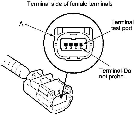 - To prevent damage to the connector terminals, do not insert the test equipment probes, paper clips, or other substitutes as they can damage the terminals. Damaged terminals cause a poor connection and an incorrect measurement.