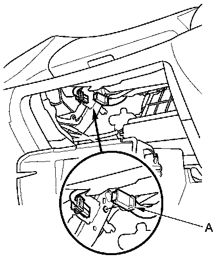 4. Disconnect the front passenger's airbag inflator 4P connector (A) on the dashboard wire harness.