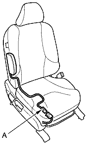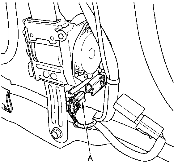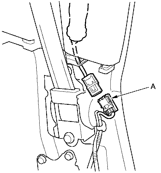 9. Disconnect the driver's and the front passenger's seat belt tensioner 4P connector (A) on the floor wire harness.