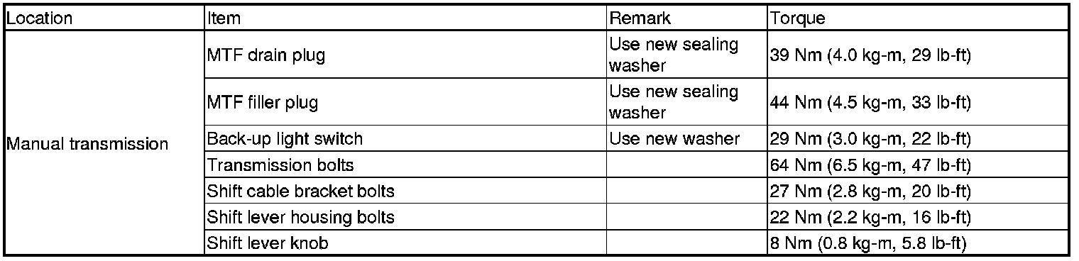 Refer to the S/M for the bolts/nuts not indicated here.
