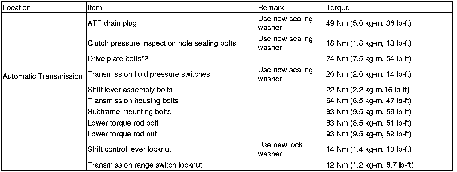 Torque Specifications