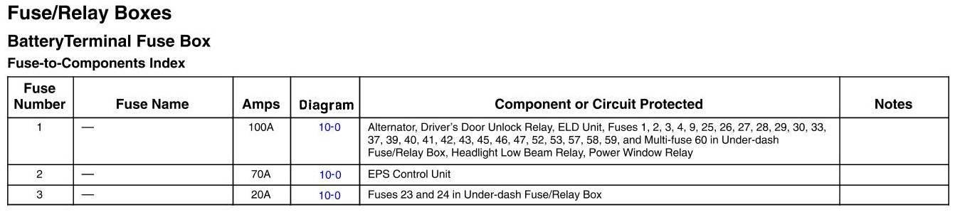 Battery Terminal Fuse Box - Fuse-To-Components Index