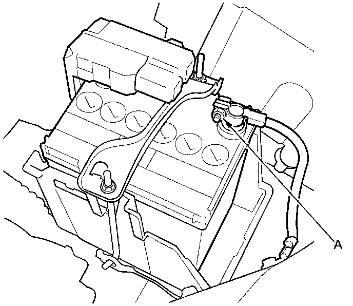 NOTE: Be careful not to disconnect the battery ground cable terminal from the battery negative terminal.