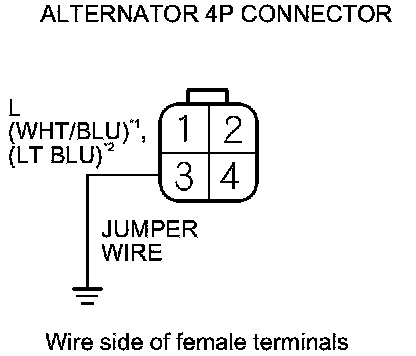 17. Connect alternator 4P connector terminal No. 3 and body ground with a jumper wire.