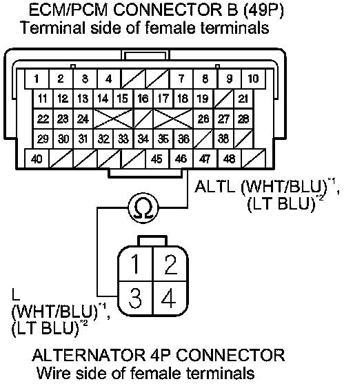 Repair an open in the wire between alternator 4P connector terminal No. 3 and ECM/PCM connector terminal B46.�