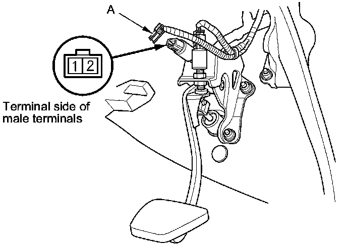 1. Disconnect the 2P connector (A) from the clutch interlock switch.