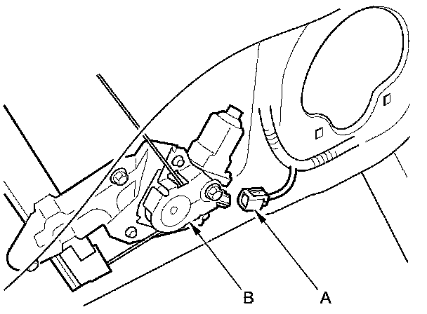 5. Disconnect the 6P connector (A) from the driver's power window motor (B).