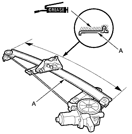 7. Apply multipurpose grease to all the sliding surfaces of the regulator (A) where shown.