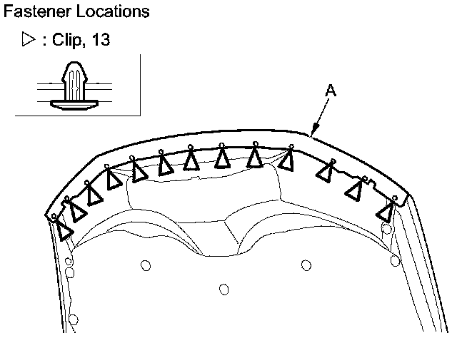 1. Detach the clips with a clip remover, then remove the hood seal (A).