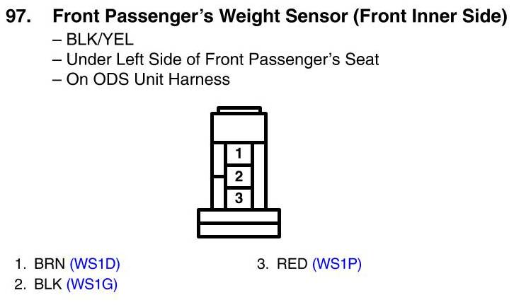 View 97 - Front Passenger's Weight Sensor (Front Inner Side) Connector View
