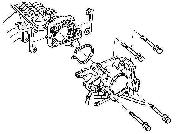 6. Remove the throttle body without disconnecting the water bypass hoses.