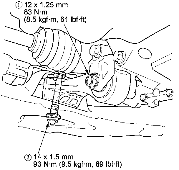 29. Tighten the torque rod mounting bolt and nut in the numbered sequence shown.