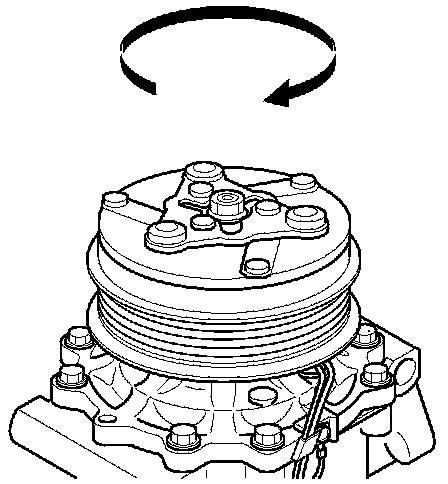 2. Check the rotor pulley bearing play and drag by rotating the rotor pulley by hand. Replace the clutch set with a new one if it is noisy or has excessive play/drag Service and Repair.