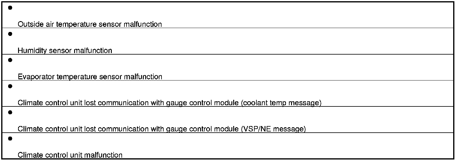 If the climate control unit detects a sensor malfunction, or if the PCM detect a problem with the communication line to the climate control unit during A/C use, auto idle stop is disabled, and the IMA indicator comes on to alert the driver of the problem. The climate control unit may disable auto idle stop under other conditions as well. For more information, refer to the IMA section.